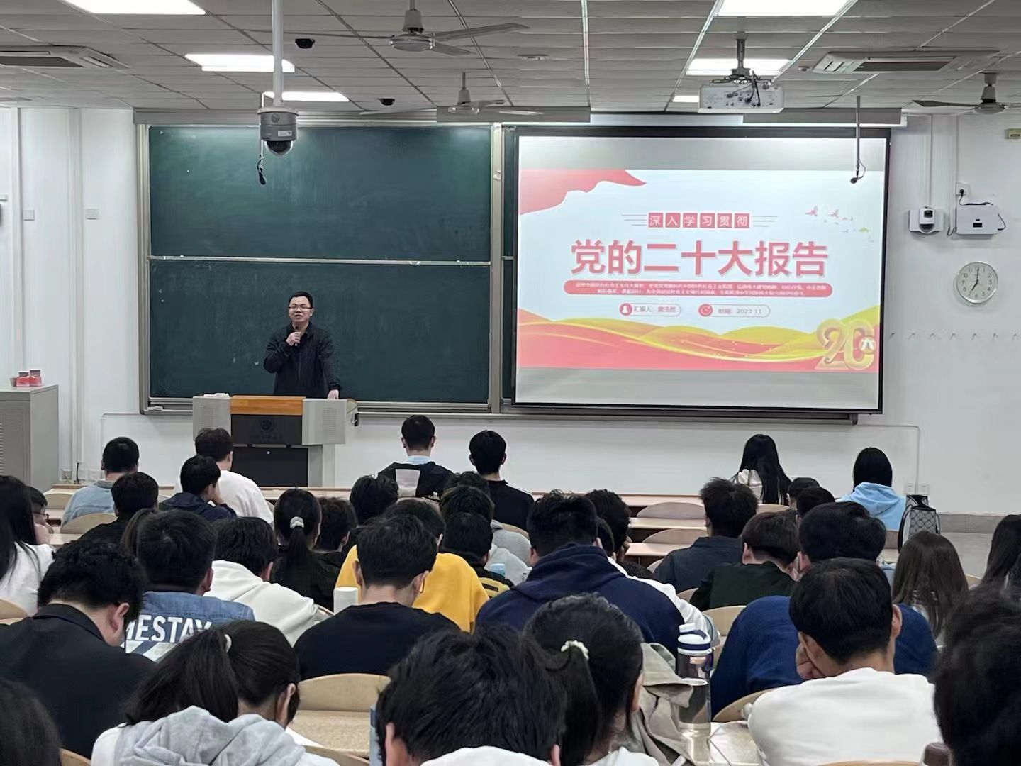 112日晚,我院第67期入党积极分子培训班第学习贯彻党的二十大精神”于教1-104开讲,学院学生第一党支部书记雷浩然150余名党课学员进行授课。