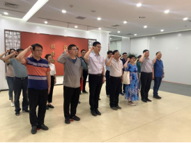 参观结束后,全体党员面对党旗,在高明院长的带领下,集体进行庄严宣誓,重温入党誓词。