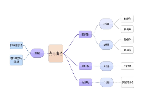 光电青协的办公室部门主要负责光电青协的后勤任务,是一些活动得以进行的基础。平时主要负责活动的策划组织,档案管理,宣传设计以及各项活动的文书整理,并协助其他部门参与志愿活动、报销、审核和评比工作。