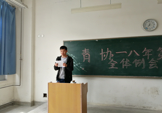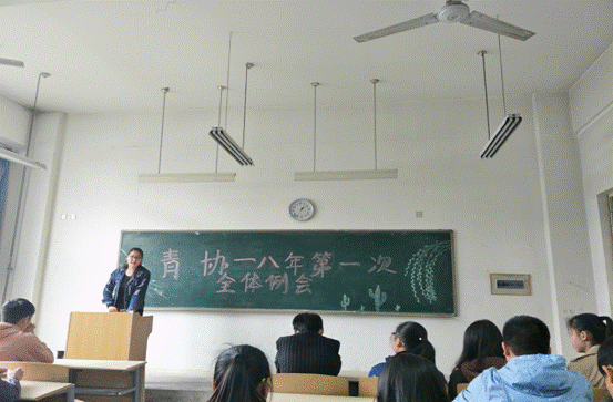 青协主席白杏首先发言,她总结了上学期青协的各项工作,对所有成员的出色表现给予了充分肯定。同时,对“优秀志愿者”等各项评优做出了解释和说明,并且鼓励大家积极参与评优,为自己赢得荣誉。之后,她对今后青协的工作做出了部署和规划,要求每位成员干好本职工作,做好志愿服务,不断提升自我,挖掘潜能,突破极限。另外,她还对即将开展的活动做出了详细布置和安排。