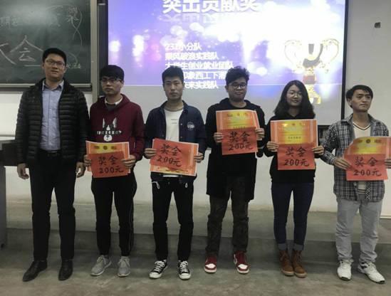 大会对各实践队进行了表彰,由朱老师为最佳团队奖获得队伍:潜筑三农 探梦新途实践队、科创燎原中国电子展调研队颁奖,李睿老师为突出贡献奖获得队伍:231小分队、乘风破浪实践队、大学生创业就业团队、红色印象西工下湘实践队、筑梦未来实践队颁奖,孙君老师为优秀组织奖获得队伍:青春梦丝路情暑期实践队、红色先锋队、中国梦 志愿心 创新创业励志求学实践队、薪尽火传实践队、蓝梦想实践队、未来队、红色之旅实践队颁奖。随后,优秀学生代表发言,他们同大家分享了一些暑期社会实践的心得体验,同时鼓励同学们树立正确的认识,积极参加社会实践活动,要有肯吃苦,甘寂寞的毅力,努力丰富自己。大会在热烈的掌声中圆满结束。