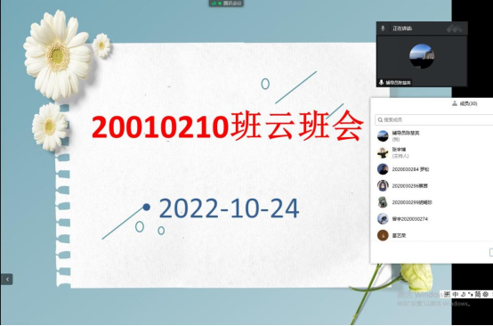10月24日晚,我院20010210班组织召开了线上云班会,会议由辅导员陈慧英主持,班级全体学生参加了本次会议。