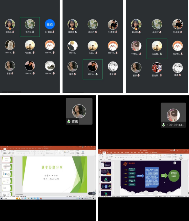 其次,由4名学生代表发言。第一位测控的康董董同学,从招聘资源、简历排版和面试技巧三个方面讲述了自己的面试经验。丰富同学们的招聘资源、提高简历的初筛率以及应对面试官的问题应答技巧。第二位光信息的王佳乐同学,主要从如何编写一份好的简历以及面试中的应注意事项,系统性的为同学们介绍了求职的流程,使同学们对求职的步骤有了清楚的认知。第三位电科的洪恩华同学结合自己的面试经验,提醒同学要及时关注校内外招聘会,为同学们提供了更多的招聘渠道。还说明了三方签订后的注意事项,使同学们受益匪浅。第四位同学是就业处的助理马云赛同学,更专业的为大家介绍了网签系统、线上签约和线下签约的流程,以及需要注意的问题,使同学们在新版签约系统中不犯难。最后,雷浩然和裴旭乐分别从求职准备以及就业服务通道等方面给同学们分享了经验。