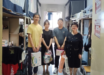 在第三十三次全国助残日前夕,为关爱残疾学生,5月17日,光电工程学院党委副书记杨利红,辅导员郭帅和蒋紫洮老师,深入学生宿舍慰问了2021级高超同学,为他送去诚挚的问候和祝福。