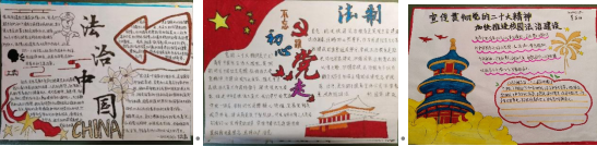 活动以宣传党的二十大精神为主题,全面推进校园法治建设,深入开展法制宣传教育,以手抄报绘制的形式,宣传法治知识,鼓励同学们了解相关的政策,提升法治意识。在活动中,同学们用多彩的图案和整洁的文字表达了自己对校园法治建设的认识和体会。活动受到学生们的广泛支持,体现出同学们对校园法治建设的重视