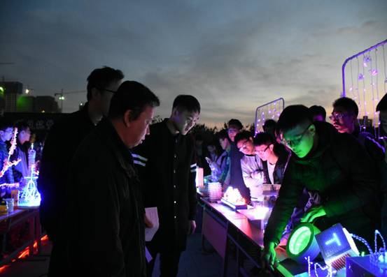 活动中,主持人对本次灯光节的投票方式和评比规则进行了介绍。高明院长,黄晓龙老师,朱先彬老师以及李睿老师一同参观了此次灯光节展出的139件作品,高院长多次驻足细心观看参展作品并同作品制作者进行交流,他对作品的制作技术与创意进行分析点评,并为心仪作品投上宝贵一票。现场观众也有序参观了作品,纷纷为喜欢的作品投票。