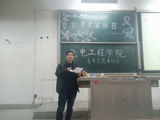 本次活动分为艾滋病和传染病知识科普以及电影观看两部分。首先,孙君老师表示光电青协自开学以来举办多次关于“预艾防艾”的外展活动,同时也是我校宣传艾滋病的中坚力量,对光电青协开展的艾滋病预防系列活动给予高度评价。接着,校医院贾院长讲话,他表示近几年来检测出的艾滋病病例在青年学生中占比最多,主要集中在17-24岁之间。因此了解艾滋病、预防艾滋病变得十分重要。王雪琪同学简单介绍了艾滋病,包括艾滋病的发现、传播途径、如何预防等等。校医栾院老师对艾滋病的传染源、检测方式等等进行了补充,又简单介绍出血热、肺结核、诺如病毒等传染病,让同学们充分了解了传染病的危害、传播途径以及如何预防等。宣讲结束后,现场师生一同观看了电影《达拉斯买家俱乐部》,影片讲述了主人公被诊断出感染上艾滋病病毒后,与病魔顽强斗争的故事。