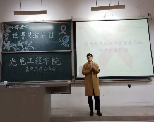 12月1日是“世界艾滋病日”,由西安工业大学校医院主办、mile米乐体育青年志愿者协会承办的艾滋病主题观影活动在教1-205举行。出席本次活动的有校医院贾应应院长、栾芳玲老师、学院团委书记孙君老师、光电青协全体成员以及2018、2019级班干部。活动由王雪琪主持。