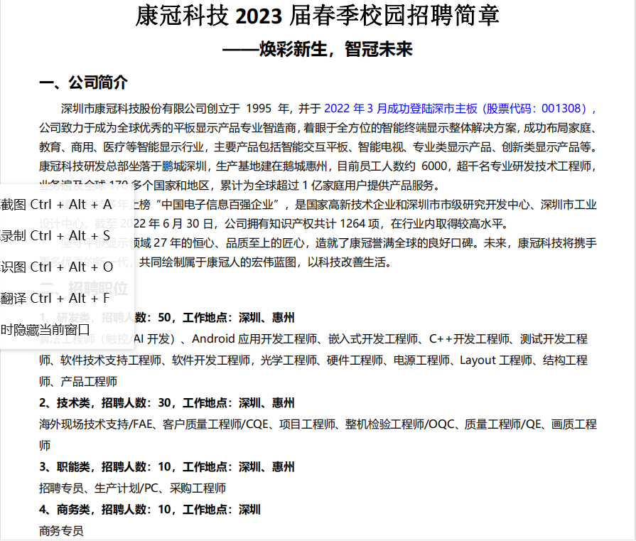 康冠科技招聘