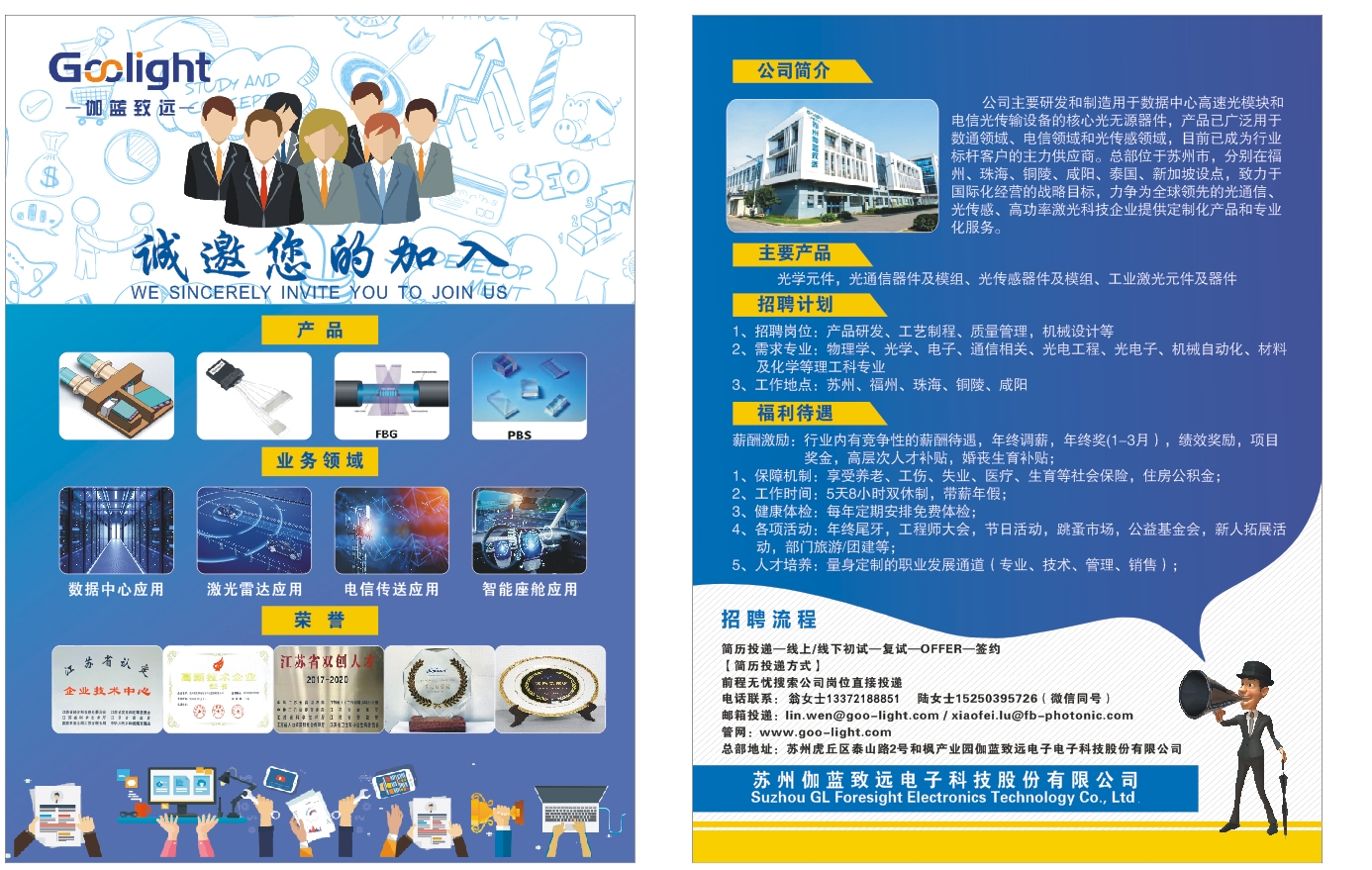 【企业简介】:公司主要研发和制造用于数据中心高速光模块和电信光传输设备的核心光无源器件,产品已广泛用于数通领域、电信领域和光传感领域,目前已成为行业标杆客户的主力供应商。总部位于苏州市,分别在福州、珠海、铜陵、咸阳、泰国、新加坡设点,致力于国际化经营的战略目标。