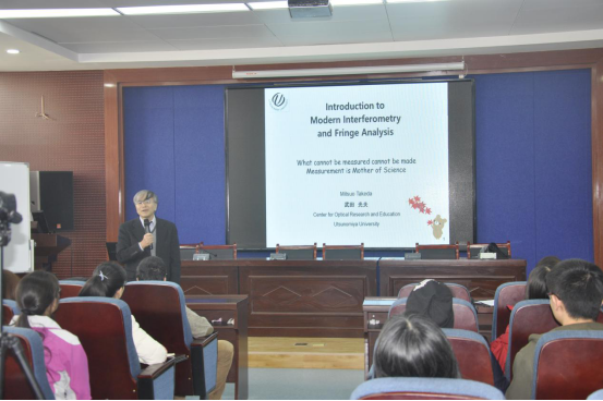 11月24日上午,武田光夫教授在工7-402报告厅为广大师生作了题为“Introduction to Modern Interferometry and Fringe Analysis”的精彩学术报告,光电学院硕博士研究生和相关专业教师参加。报告中武田光夫教授回顾了光学干涉技术的发展历程与进展,结合干涉测量原理,对其发明的“通过傅里叶变换方式进行条纹分析”技术进行了详细和生动的阐述,并与师生进行了充分交流和讨论,对提出的专业问题作了详细的解答。