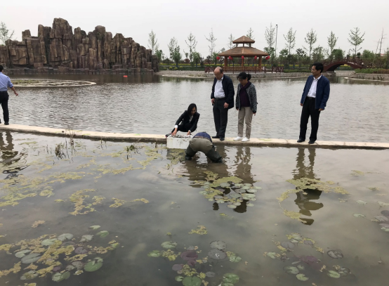离子束生物育种转化基地位于富平县中华郡文化创意产业园,是富平县与我校共同建设的产学研一体化结对帮扶示范基地。为做好此次扶贫工作,我校向富平县提供了1200余株采用离子注入技术进行诱变、培育的荷花苗,并由蔡长龙教授等人指导,在中华郡文化创意产业园内数百平方米的湖面进行了栽种。