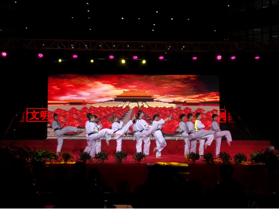 大学生艺术团曲苑部带来的心理剧《遥远星球上的孩子》,号召我们更多地关注自闭症儿童。激光舞-电光火影更是延续传统,向新生展现了光电特色。2018级班主任赵欣、辅导员陈慧英、雷浩然、孙君带来的节目《三句半》,语言幽默风趣,接地气,将现场气氛推向高潮。歌曲《理想》传播着爱与宁静的福音。跆拳道表演,腿法潇洒,身姿帅气,代表着百折不挠的精神。伴随着欢声笑语,晚会在合唱《相亲相爱的一家人》中圆满落幕。