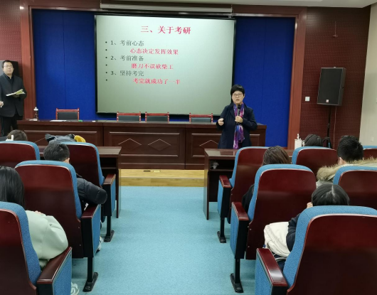 会上,两位老师首先就期末考试、四六级考试、研究生考试等进行考风考纪教育,督促同学们认真复习,诚信备考,保持良好心态,遵守考试纪律,并宣读《西安工业大学考场规则与考试纪律管理办法》。接着,强调严格按照学校疫情防控要求做好每日晨午检打卡,不必要不外出,提醒同学们及时打扫宿舍卫生,做好冬季传染病预防工作,尤其要预防水痘、出血热等高发疾病。要严格履行请销假制度,生病要到正规医院就诊,遵医嘱配合治疗。外出及求职要注意人身、交通及财物安全,谨防电信诈骗。鼓励考研的同学以积极平和的心态备考、应考,做好考前准备,坚持不懈,并预祝同学们考出理想成绩。杨利红对大四毕业班学生提出两点要求:一是要端正考风、严肃考纪,守住诚信底线,坚决不碰作弊红线,保证顺利毕业。二是要树立托底意识,先就业再择业,规避就业难风险;加强同学间的沟通交流,共享求职经验,相互促进带动,实现共赢;要善于包装自己,不断提升就业能力,收获更高质量的就业岗位。