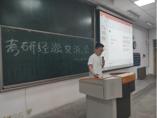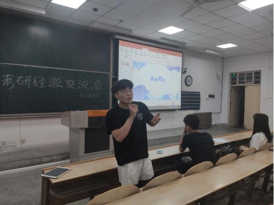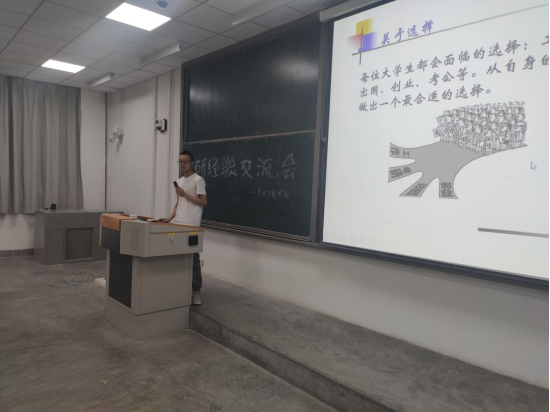 交流会上,五位同学结合自身情况分享了宝贵的考研经验,考取西安工业大学大学的高钰豪表示考研要紧密结合自身情况、注重学习方法。考取上海大学的石贤聪讲到考研路上熟能生巧,贵在坚持,数学和专业课要多练习、多动脑。考取南京理工大学的王园毅则表示要正确看待考研的目的与意义,科学复习规划。陈紫晗在交流会中提到要合理利用学习资源,劳逸结合。王书敏指出考研计划要合理,不要堆积学习任务给自己带来不必要的焦虑感。本次交流会帮助正在备战考研的同学们巩固了信心,给予了同学们积极的鼓舞。