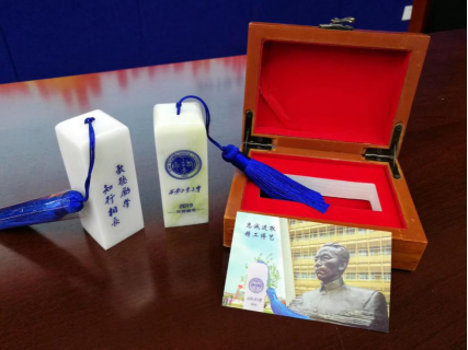 李睿老师宣布仪式正式开始,毕业生们怀着激动的心情,每个人有序上台领取属于自己独一无二的印章。印章承载“敦德励学 知行相长”的内涵,寄托着母校对毕业生的期望。