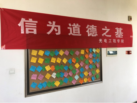本次活动主题为“诚乃立身之本,信为道德之基”,活动由书写诚信寄语、诚信宣誓两部分组成。一句句积极向上的寄语和整齐洪亮的宣誓体现了同学们对诚信的深刻理解,展现了我院学子积极向上的精神风貌,传递诚信正能量。