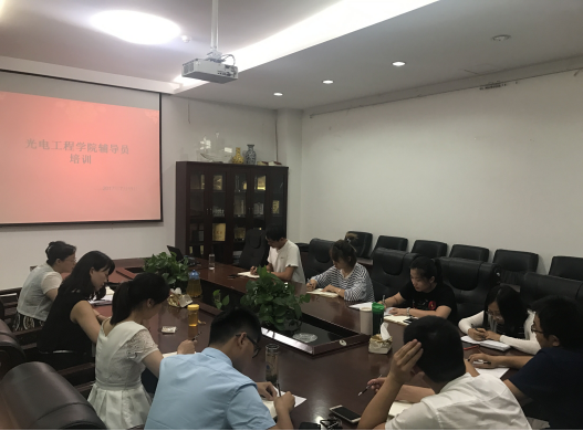 为进一步提高我院辅导员的综合能力和业务素质,进一步增强服务学生意识,更加有效地开展学生工作, 7月11日下午,我院在工6-416召开辅导员培训会,院党委副书记陈彤就辅导员如何履行好岗位责任、如何开展好主题班会等内容对学院全体辅导员进行了培训。
