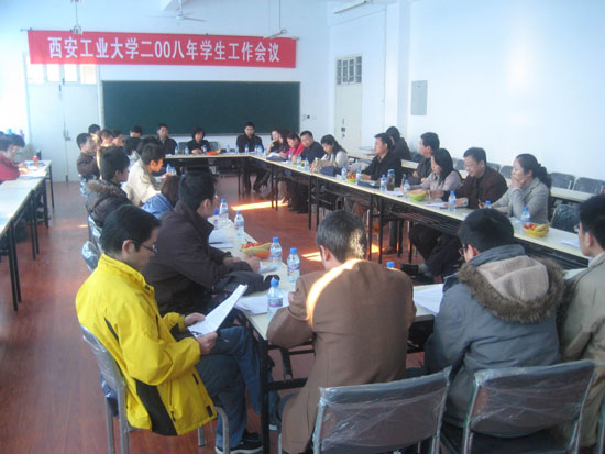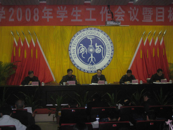 (本网讯)12月9日 ,西安工业大学2008年学生工作会议暨目标教育经验交流会隆重召开。校党委书记赛云秀、校长刘江南、党委副书记丁养斌、副校长张君安、刘建勋出席大会。学生工作部等相关行政部门、各院(系)、雁塔校区、继续教育学院、北方信息工程学院领导及全校辅导员和教师代表共400余人参加了大会。