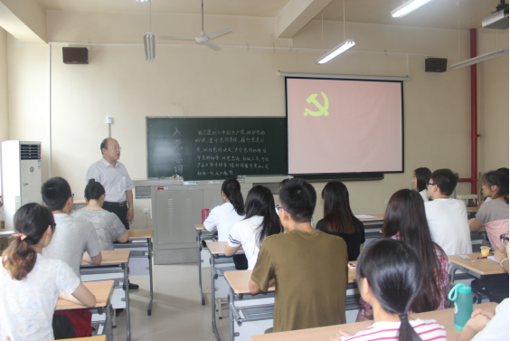 院党委书记弥谦代表学院党委致辞。他向新发展的党员表示衷心的祝贺,希望他们进一步坚定共产主义理想信念,以更严格的标准要求自己,在思想上、行动上做到真正入党。要求广大学生党员在“两学一做”的学习教育,认真学习党章党规,做合格党员,处处起到模范带头作用。