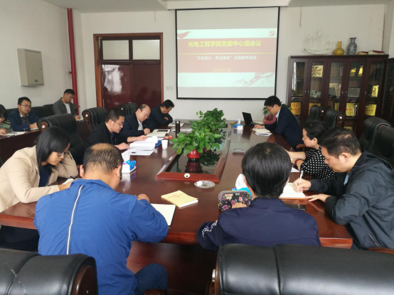 首先,弥书记就学校成立 “不忘初心、牢记使命”主题教育领导小组及办公室的通知,以及关于印发《西安工业大学开展“不忘初心、牢记使命”主题教育实施方案》进行了解读与学习。接下来,弥书记就“不忘初心、牢记使命”主题教育活动的开展进行了部署安排,并要求各支部认真落实学习计划,将主题教育工作与学校教育教学实际紧密结合,强化问题导向,强化宗旨意识,将“学、研、查、改”贯穿主题教育工作始终,边学、边查、边改,落细、落小、落实。