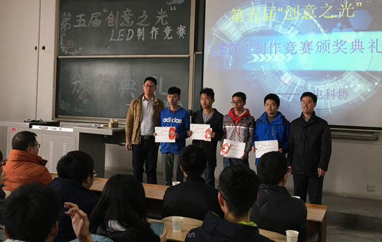 光电测试技术研究所党支部以夯实学生的专业知识,提高实践动手能力为目的,成立了教师技术指导小组,为本届‘创意之光’LED制作竞赛提供全程技术指导。针对参加竞赛的学生实际工程能力不足的现状,开设了相应的技能培训,实际指导学生焊接调试电路板,编写单片机程序,优化光源显示效果。考虑到学生专业基础知识比较欠缺,为参赛学生提供了专门的培训场地。从设计方案的确定到LED的灯展的成功举办,党支部全体党员同志以“特殊党费”的形式为此次活动提供了的奖金支持。