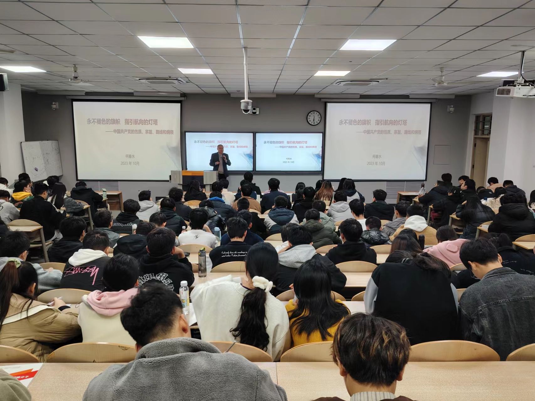 11月13日晚,我院第67期入党积极分子培训班第四讲“永不褪色的旗帜 指引航向的灯塔——中国共产党的性质、宗旨、路线和纲领”于教2-212开讲,校党委委员、党办校办主任何春水老师为150余名党课学员进行授课。